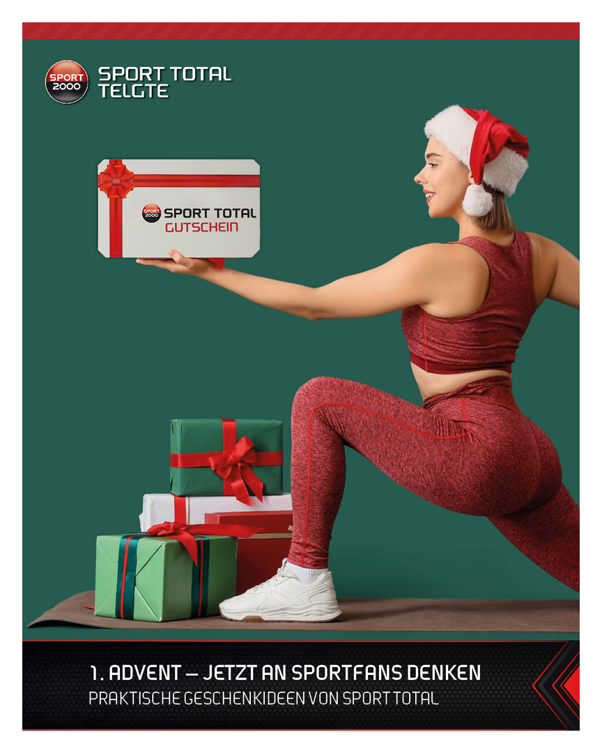 Zum 1. Advent rückt die Frage nach passenden Weihnachtsgeschenken näher. Wir setzen auf Präsente, die im Alltag und beim Sport zum Einsatz kommen. Ob funktionelle Bekleidung, Winterjacken, Sportschuhe, Accessoires oder Ausstattung für Training und Freizeit: Bei uns in Telgte finden Sie viele Möglichkeiten, Ihren Liebsten etwas von Sport Total zu schenken.
