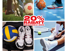 Den ganzen März über bieten wir 20 % Rabatt auf unser gesamtes Sortiment an Fußball-, Handball-, Volleyball- und Tennisschuhen.